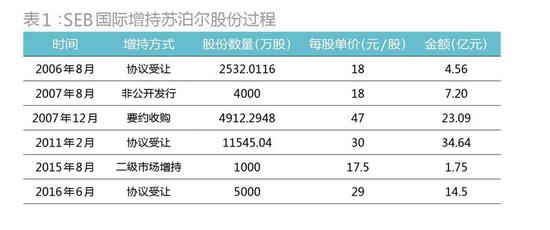 在经过股份转让和定向发行新股后,SEB国际累计持有苏泊尔定向发行新股后总股本的30.24%。